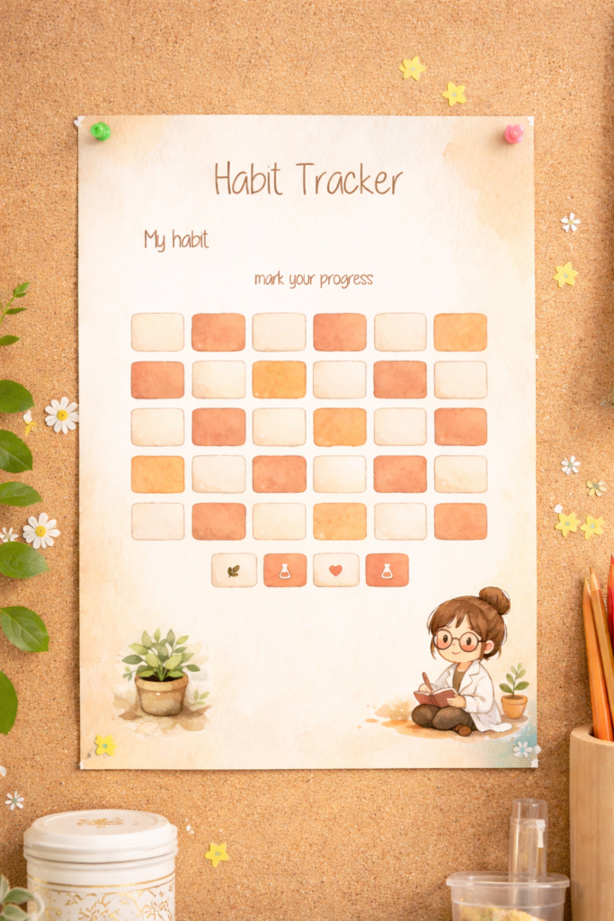 Choose one habit you want to build and mark each day you complete it. Over time, the tracker becomes a small visual reminder that progress doesn’t come from motivation alone, it comes from consistent action.
